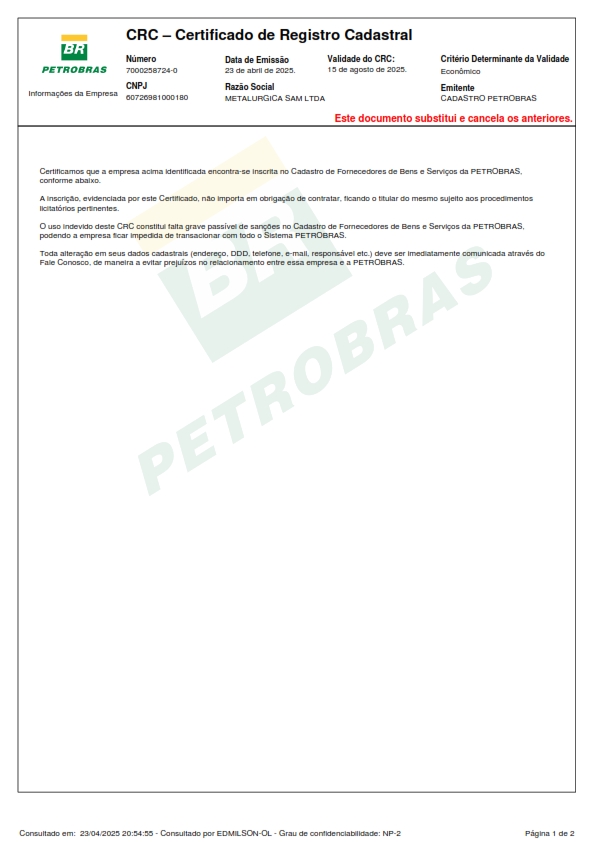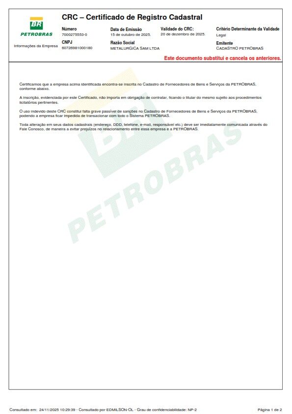 Desde sua fundação em 1964, a Metalúrgica SAM tem sido forjada com os mais nobres valores: Ética e Transparência.
